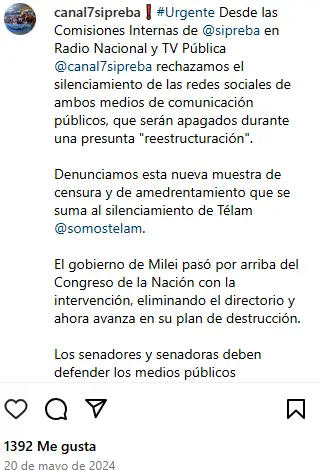 En paralelo, los trabajadores y trabajadoras del sector manifestaron preocupación y denunciaron que se trata de un intento de censura y vaciamiento del sistema de medios estatales. La medida se suma al conflicto ya abierto con la agencia de noticias Télam, cuya página web permanece desactivada desde marzo y cuyas redacciones fueron valladas sin previo aviso.