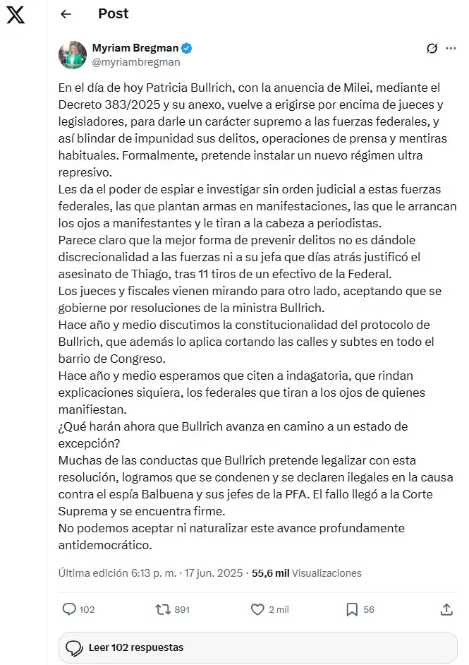 En otras jurisdicciones donde se modificaron las leyes de seguridad, como la Ciudad de Buenos Aires, la provincia de Buenos Aires o el Chaco, las reformas siempre atravesaron un proceso legislativo. El caso de la PFA, en cambio, elude toda instancia de deliberación pública, lo que refuerza las sospechas sobre un diseño deliberado de concentración del poder policial en manos del Ejecutivo.