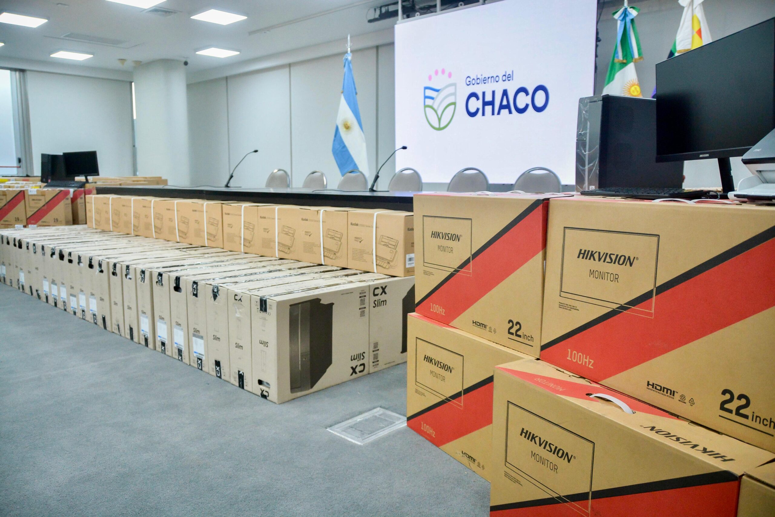 El gobernador Leandro Zdero, acompañado por el ministro de Gobierno, Jorge Gómez, entregó 250 equipos informáticos que serán destinados a los 99 Registros Civiles de toda la provincia. “La misión es poder acompañarlos, sabemos que falta muchísimo, pero dar este servicio a la gente requería también poder genera una compra de insumos para algo tan esencial como es la tecnología en estos tiempos”, expresó el primer mandatario provincial.
