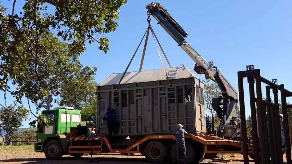 La elefanta viajó en un contenedor especialmente diseñado para su especie, en cumplimiento con las normativas internacionales de CITES, que dan pautas estrictas para el transporte de animales vivos.