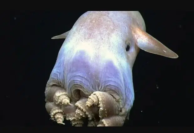 El pulpo «Dumbo» pertenece al género Grimpoteuthis y recibe ese nombre por las aletas que sobresalen a los costados de su cabeza, similares a las orejas del famoso personaje animado. También se los conoce como pulpos «paraguas», debido a la membrana que une sus brazos.