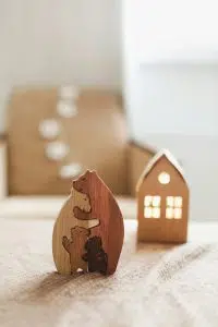 - Juguetes de madera certificada (FSC) sin barnices tóxicos.