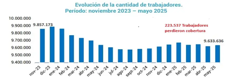 Por último, según la última publicación oficial disponible sobre la cantidad de trabajadores y empresas con cobertura para casos de accidentes laborales o enfermedades profesionales, entre noviembre del 2023 y el mes de mayo de este año, en todo el territorio nacional, han quedado sin cobertura un total de 223.537 trabajadores y 15.563 empresas, advirtieron.