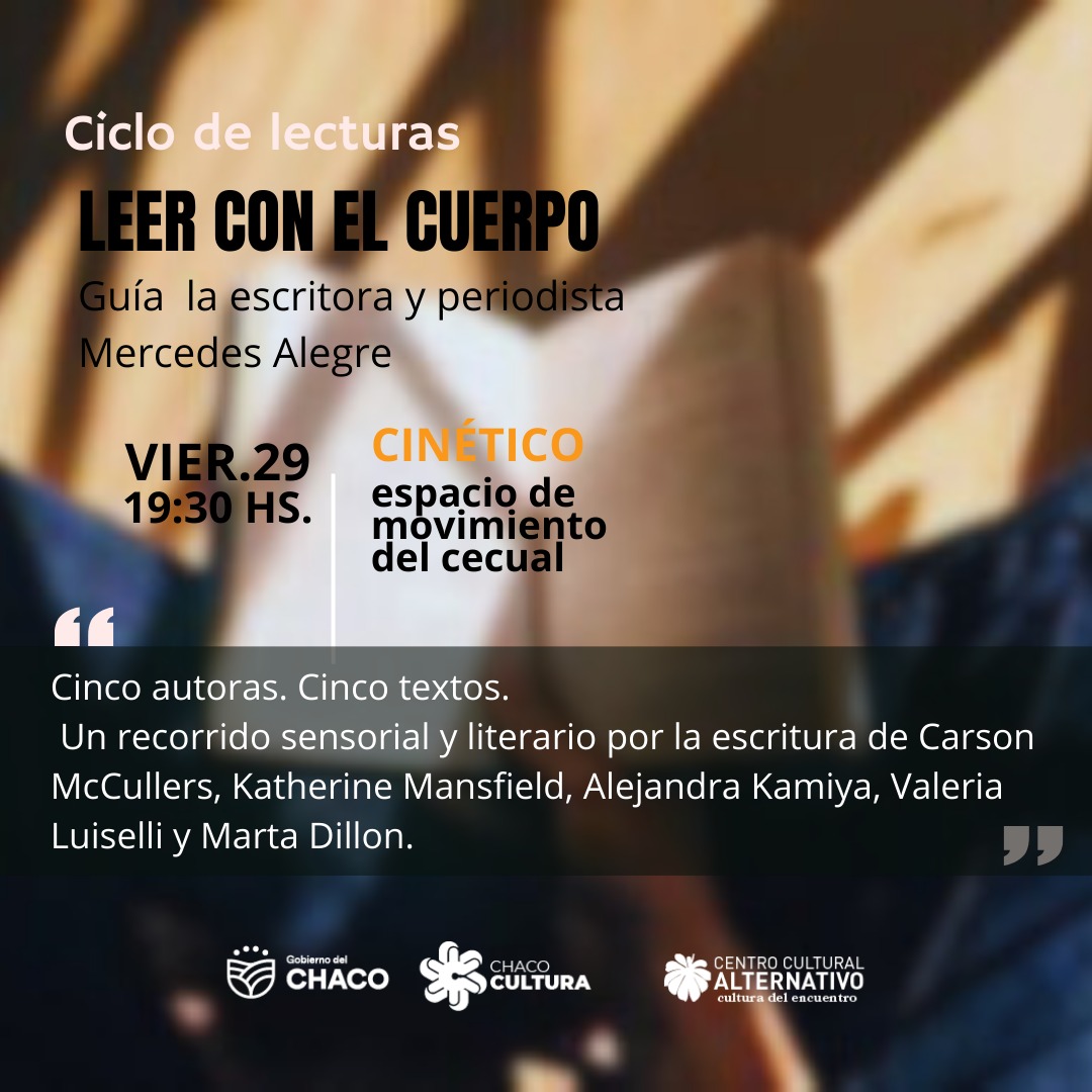 El ciclo Leer con el Cuerpo surge de Cinético, espacio de movimiento y el cuerpo de la casa cecualera, con la propuesta de “habitar la literatura desde los sentidos”.En esta primera edición, Mercedes Alegre guiará un recorrido sensorial por la escritura de Carson McCullers, Katherine Mansfield, Valeria Luiselli, Alejandra Kamiya y Marta Dillon.