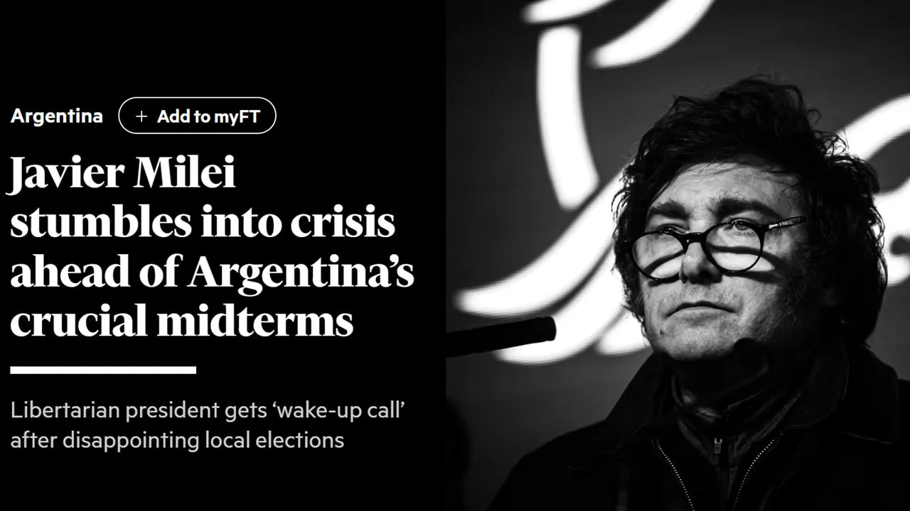 Después del revés en la provincia de Buenos Aires, el diario británico Financial Times afirma que Javier Milei atraviesa “la mayor crisis” de su gobierno como resultado de varios factores convergentes.
