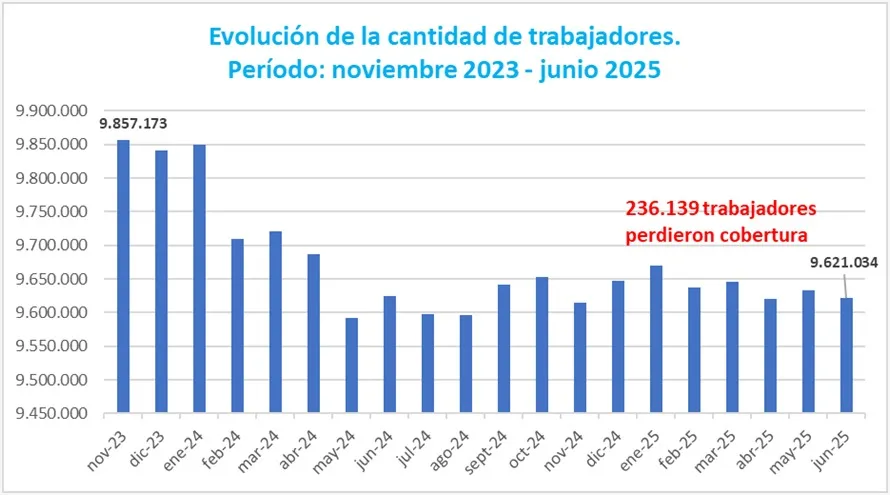 La perdida de cobertura puede significar la pérdida de empleo, o al menos que pase al sector informal, explicaron. Las estadísticas reflejan que durante el Gobierno del presidente Milei se ha iniciado un proceso que ahonda aún más el trabajo precarizado en el país, enfatizaron.