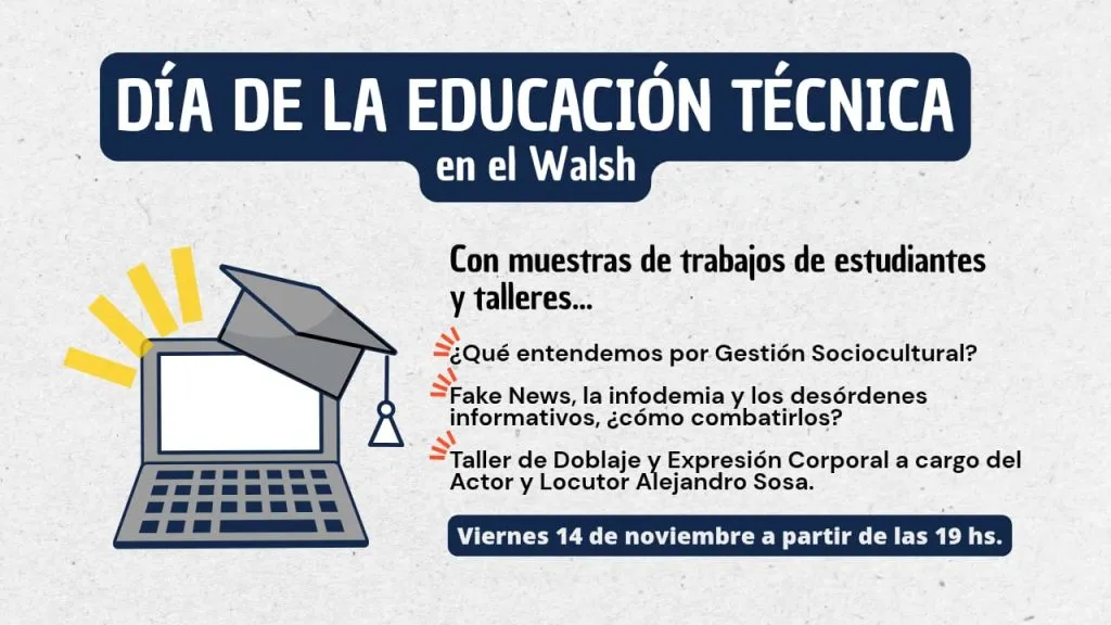 El Walsh es una institución pública de nivel superior con oferta formativa gratuita en tecnicaturas y trayectos vinculados a comunicación y otras áreas, con actividad regular en turno vespertino.
