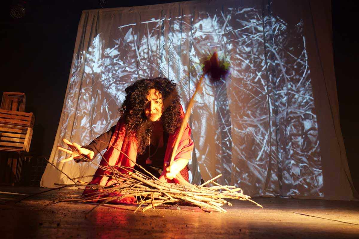 —La obra es poética, invita a la metáfora. En la poesía y la forma teatral está la verdad. O no sé dónde está la verdad, pero es donde me parece que pueden confluir varias capas y entrar mejor a más gente. El texto nos permite ese salto. Mamá Chiyeta tiene vocación de verdad, quiere saber qué es lo que está pasando en el pueblo; pasan tantas cosas raras y ella se comunica con sus sombras o con sus objetos, sus ramitas, a través de las cuales obtiene saberes. Y Leopoldo, por amor a Lucía, va adelante con todo. Defiende la inocencia de su amor a toda costa.