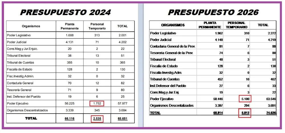 En términos políticos, la lectura es clara: con el presupuesto ya sancionado, Zdero no solo tiene la herramienta para administrar gastos e inversiones, sino también una chequera de hasta 5.100 cargos temporarios para manejar desde la propia Casa de Gobierno. El mensaje público habla de ajuste y “orden fiscal”; la letra chica habilita una expansión fuerte de la planta bajo control del Ejecutivo.
