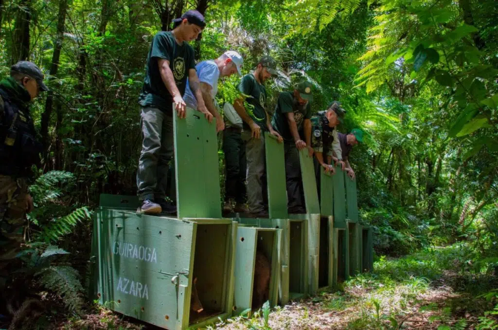La liberación fue encabezada por el Ministerio de Ecología y Recursos Naturales Renovables de Misiones, en conjunto con el Centro de Rescate, Rehabilitación y Recría de Fauna Silvestre Güirá Oga, gestionado por la Fundación de Historia Natural Félix de Azara.