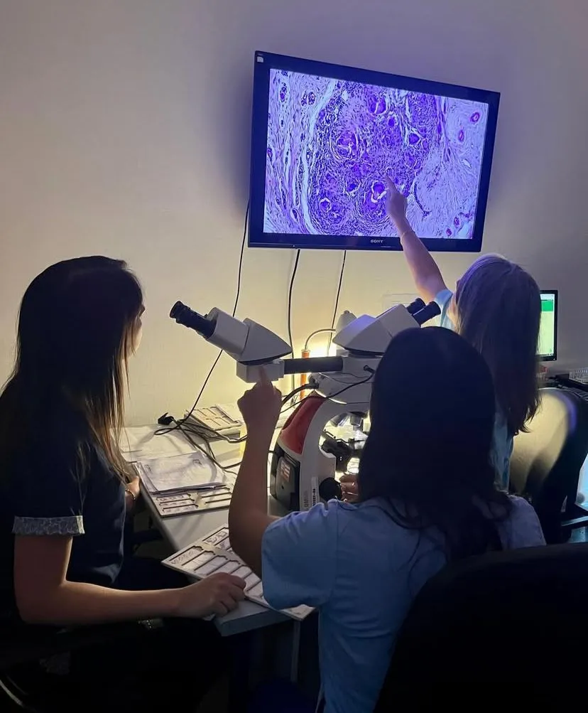 Además, el equipo participa activamente en la cátedra de Anatomía Patológica de la Universidad Provincial de Laguna Blanca (UPLaB) y en los encuentros de tumores de manera semanal, espacios donde se discuten casos complejos y se toman decisiones terapéuticas interdisciplinarias.