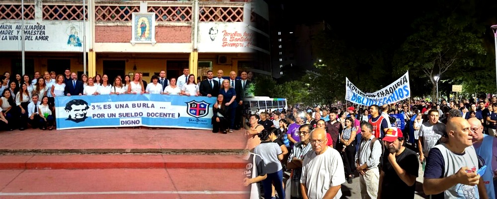 El ciclo lectivo 2026 arrancó en Chaco con el conflicto docente instalado en la puerta de las escuelas. Hubo paro de 24 horas en el inicio de clases, una marcha de antorchas ayer por la tarde-noche (lunes 2 de marzo) y reclamos visibles en establecimientos como el Colegio Don Bosco, donde los carteles por el aumento del 3% expusieron el clima real del comienzo.