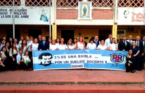 La tensión también quedó a la vista en el Colegio Don Bosco de Resistencia, donde docentes exhibieron carteles con críticas al aumento del 3% y reclamos por un salario “digno”. El episodio circuló en redes y fue citado por medios locales como síntoma del arranque: clases que formalmente empiezan, pero con conflicto abierto.