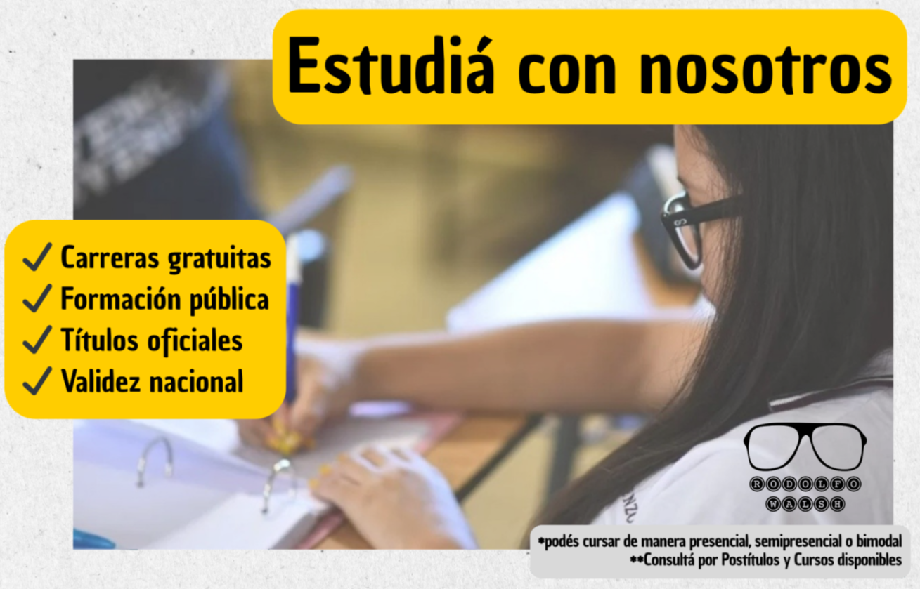 El Instituto de Educación Superior Rodolfo Walsh anunció que se encuentra abierta la inscripción para las tecnicaturas superiores públicas y gratuitas. La oferta académica incluye: