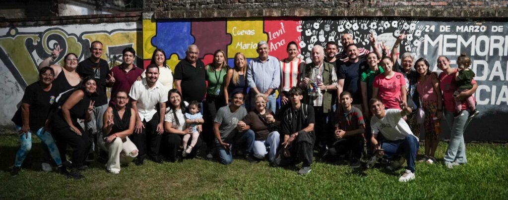 También hubo un espacio de intercambio, como suele pasar cada vez que la película convoca a pensar y a decir lo que duele, y después participamos de la restauración de un mural levantado en homenaje a la política de memoria, verdad y justicia y a quienes fueron víctimas del terrorismo de Estado. Acompañó también la actividad el director del documental, Pablo Deltin, cuya presencia le dio todavía más sentido a una noche atravesada por el recuerdo, el testimonio y la necesidad de seguir compartiendo esta historia con la comunidad.
