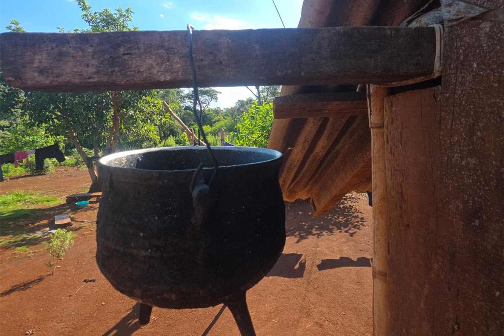Las llamas serpentean entre los gajos secos de laurel y guatambú. Cruje al arder esa leña, mutando a brasa para calentar el agua y los primeros alimentos del día. Faltan pocos minutos para las cinco y el sol comienza a insinuar su claridad tras la silueta lejana de la biosfera Yaboty.