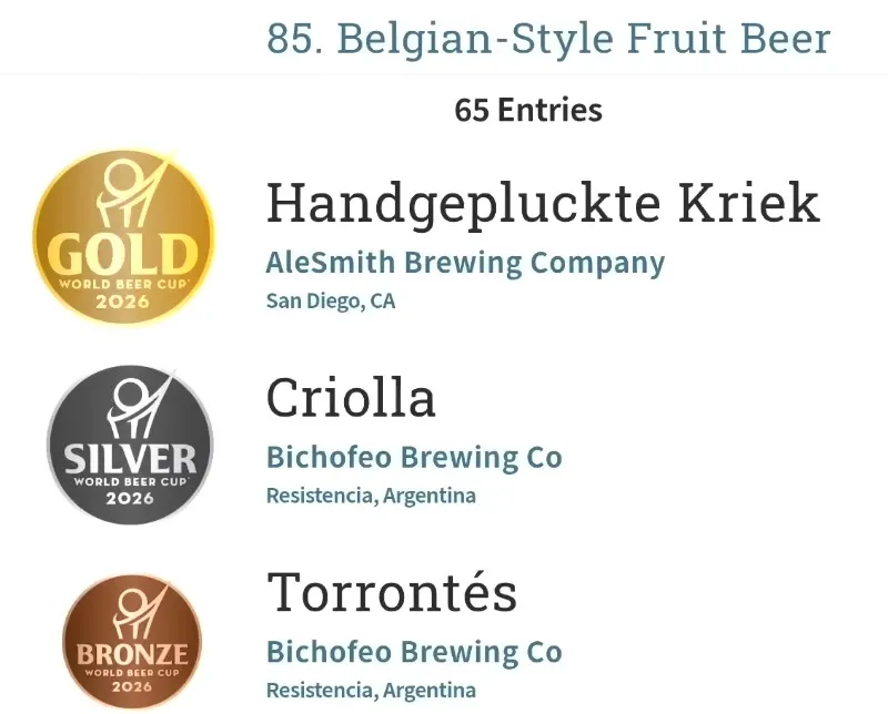 La provincia del Chaco hizo historia en la edición 2026 de la World Beer Cup, el certamen más prestigioso de la cerveza artesanal a nivel mundial, al obtener dos medallas gracias al talento de la cervecería Bichofeo Brewing Co, de Resistencia. En una competencia que reunió más de 8.000 cervezas de 1.600 cervecerías de todo el planeta, el emprendimiento chaqueño se destacó con plata para su etiqueta “Criolla” y bronce para “Torrontés”, ambas en la categoría Belgian‑Style Fruit Beer.